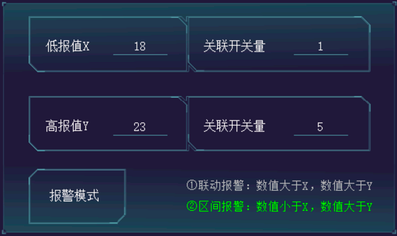 點擊“報警模式”切換“1”和“2”兩種模式 報警模式