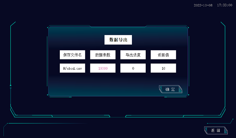 在設(shè)備USB口插入U盤,打開“數(shù)據(jù)導(dǎo)出”界面,輸入需要導(dǎo)出的數(shù)據(jù)條數(shù),點擊確定